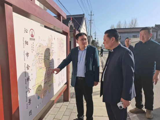 靳賢勝一行首先實地考察了宋學義故居游客中心升級情況,認真聽取了北孔村書記梁長寶同志關于游客中心升級情況匯報和規劃,并提出了建議。