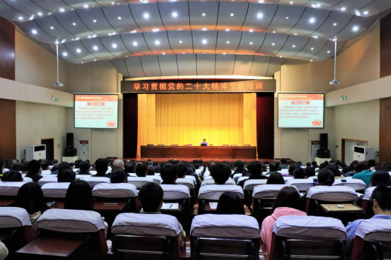 4月3日下午,焦作大學學習貫徹黨的二十大精神和全國兩會精神專題培訓第二講在南校區報告廳舉行。此次培訓邀請到中國共產黨第二十次全國代表大會代表、河南平原光電有限公司梁兵大師為師生作報告,校黨委書記汪詩懷出席,全體副科級以上干部、部分學生入黨積極分子300余人參加報告會。會議由黨委委員、副校長秦海金主持。