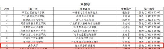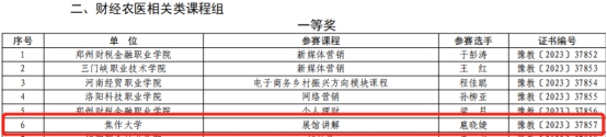 2023年4月,河南省教育廳舉行2022年河南省高等職業教育課程思政教學創新大賽,我校參賽教師喜獲一等獎2項,二等獎2項,三等獎1項。