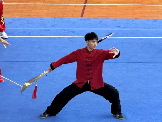 我校武術(shù)代表隊(duì)由太極武術(shù)學(xué)院、經(jīng)管學(xué)院、人文學(xué)院的8名隊(duì)員參加了本次比賽。經(jīng)過激烈拼搏,我校武術(shù)代表隊(duì)共獲得2枚金牌、3枚銀牌、3枚銅牌、第四名兩個(gè)、第五名兩個(gè)、第七名兩個(gè)及男子乙組團(tuán)體總分第二名的優(yōu)異成績(jī)。其中,我校太極武術(shù)學(xué)院趙夢(mèng)豪獲得男子乙組一類拳第一名、經(jīng)管學(xué)院楊世亮獲得男子專科甲組太極春秋大刀第一名;太極武術(shù)學(xué)院高冉豪獲得男子專科乙組初級(jí)棍第二名、太極武術(shù)學(xué)院李宗翔獲得男子專科乙組少林刀第二名、經(jīng)管學(xué)院孫宗正獲得男子專科甲組太極劍第二名;太極武術(shù)學(xué)院田俊獲得男子專科乙組劈掛拳第三名、太極武術(shù)學(xué)院李宗翔獲得男子專科乙組少林拳第三名、人文學(xué)院曹璐玥獲得男子專業(yè)甲組太極劍第三名。