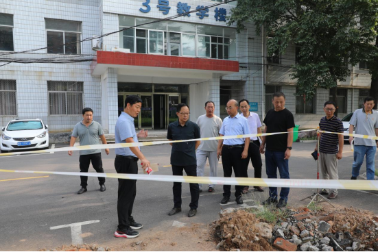 為確保學生順利入學和新學期各項工作有序開展,8月24日下午,校黨委書記汪詩懷帶隊到南、北校區的教學樓、宿舍樓、餐廳、操場、部分項目施工現場等場所檢查指導新學期開學準備工作。校黨委委員、副校長孫向召和學校辦公室、學生處、保衛處、后勤基建處等部門相關負責人陪同檢查。