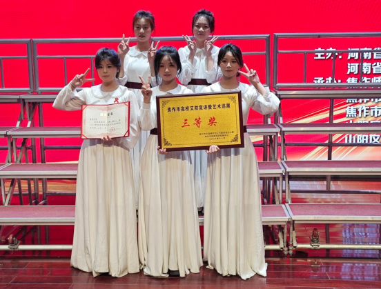 11月26日上午,2023年焦作市高校艾防宣講暨藝術巡展活動在焦作師專舉辦。我校黨委委員、副校長劉際平,宣傳統戰部部長張繼文出席活動,并給獲獎選手頒獎。我校獲得優秀組織獎,參與展演的小品《讓青春不后悔》和歌曲《擁抱你》獲得三等獎。由焦作大學紅絲帶志愿者協會參與拍攝的防艾宣傳片在活動現場和媒體平臺循環展播。