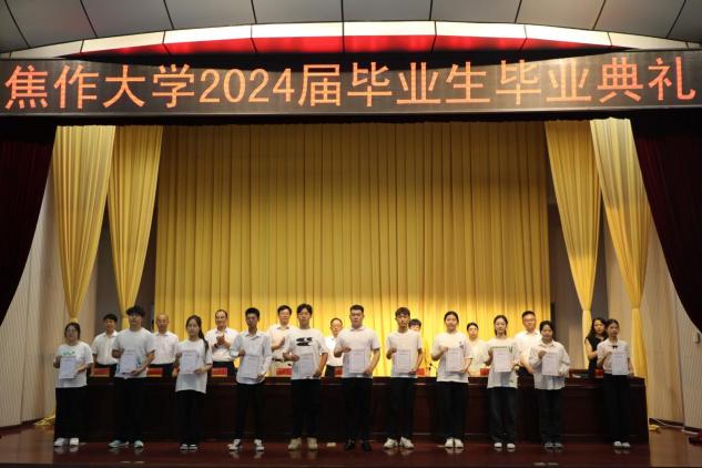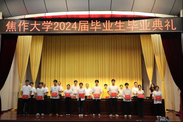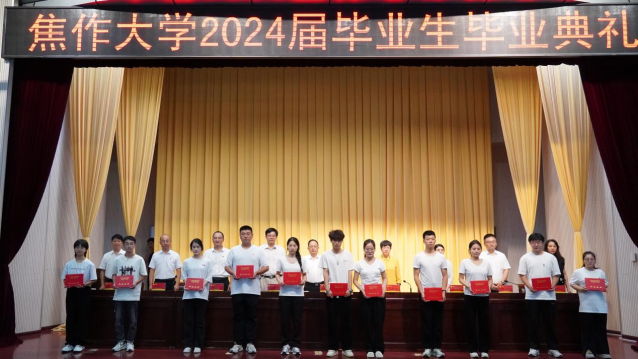 15點30分許,典禮在莊嚴的國歌聲中拉開帷幕。校黨委委員、工會主席宋萍宣讀了《焦作大學關于頒發2024屆畢業生畢業證書的決定》。校黨委委員、紀委書記李秋生宣讀了《焦作大學關于表彰2024年優秀應屆畢業生的決定》。副校長、校體委主任林鄧偉宣讀了2024屆畢業生榮獲《國家學生體質健康標準》優秀等級學生代表名單。校領導、黨委委員為2024屆畢業生代表頒發畢業證書,為優秀應屆畢業生代表頒發榮譽證書,為獲得《國家學生體質健康標準》優秀等級的畢業生代表頒發榮譽證書。