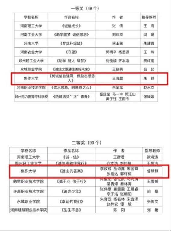 近日,河南省教育廳等五部門公布了2023-2024學年度河南省“誠信校園行”學生資助公益廣告設計大賽結果,我校選送的兩件作品榮獲一等獎和二等獎的佳績!