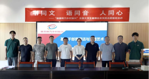 農(nóng)村基層干部普通話溝通能力是提升鄉(xiāng)村整體普通話普及程度和水平的切入點和突破口。針對農(nóng)村基層干部的普通話教學(xué),團隊從普通話語音基礎(chǔ)、日常溝通與表達(dá)訓(xùn)練、公眾演講技巧等方面進行培訓(xùn)輔導(dǎo),著力提升農(nóng)村基層干部在日常工作、會議和社交場合中的普通話使用和溝通能力,為鄉(xiāng)村治理體制建設(shè)添磚加瓦。