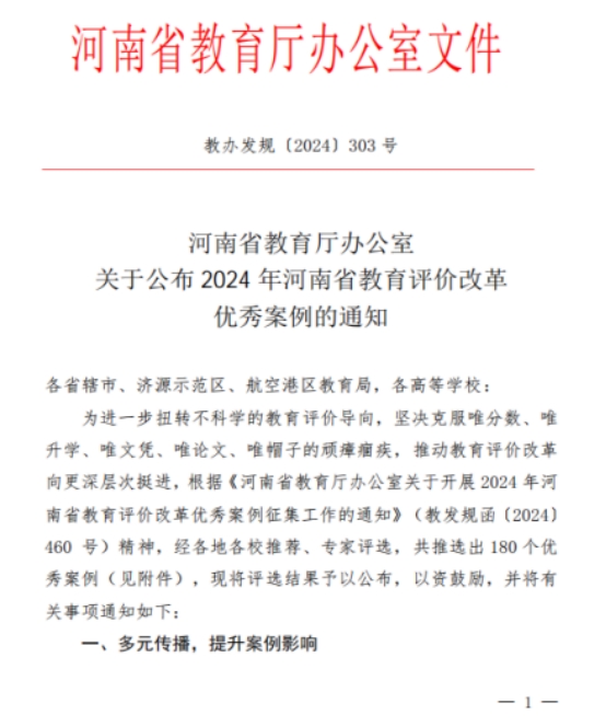 我校在2024年河南省教育評價改革優秀案例評選中榮獲佳績
