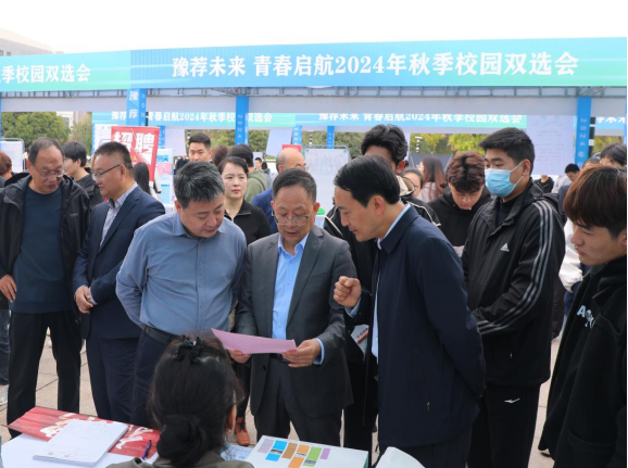 為深入貫徹黨的二十大和二十屆二中、三中全會精神,落實《中共中央國務(wù)院關(guān)于實施就業(yè)優(yōu)先戰(zhàn)略促進(jìn)高質(zhì)量充分就業(yè)的意見》文件精神,進(jìn)一步發(fā)揮高校校園招聘主渠道作用,大力拓展崗位資源,全力促進(jìn)畢業(yè)生實現(xiàn)高質(zhì)量充分就業(yè),焦作大學(xué)于10月18日在圖書館廣場舉辦2024年秋季校園招聘會暨“宏志助航”專場招聘會。焦作市山陽區(qū)委副書記、區(qū)長侯向陽,焦作大學(xué)黨委書記汪詩懷、副校長林鄧偉到招聘會現(xiàn)場指導(dǎo)調(diào)研工作。