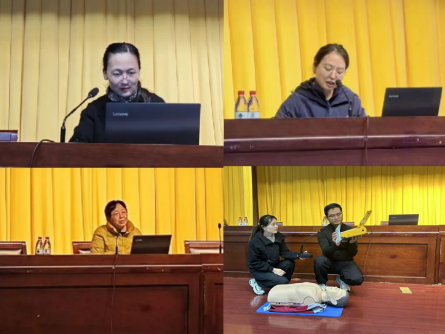 在南校區報告廳,焦作市第二人民醫院的喬雯雯醫生以《急性胸痛科普》為題向大家講解了急性胸痛的定義、疼痛范圍以及引發急性胸痛的原因等,使現場觀眾進一步認識到心梗疾病對身體帶來的傷害。焦作市120急救指揮中心王苗苗以《如何正確撥打120》為題向大家講解了如何克服常見誤區,正確、高效地撥打120求助熱線,為營救生命搶奪更多寶貴時間。焦作市第二人民醫院急診科張金霞主任以《心肺復蘇》為題通俗易懂地向大家講解了遇到心跳驟停時如何實施心肺復蘇;最后醫護人員現場示范并詳細指導群眾心肺復蘇實操技能。