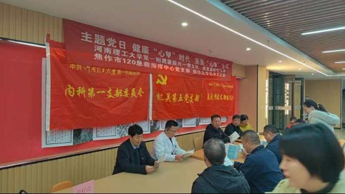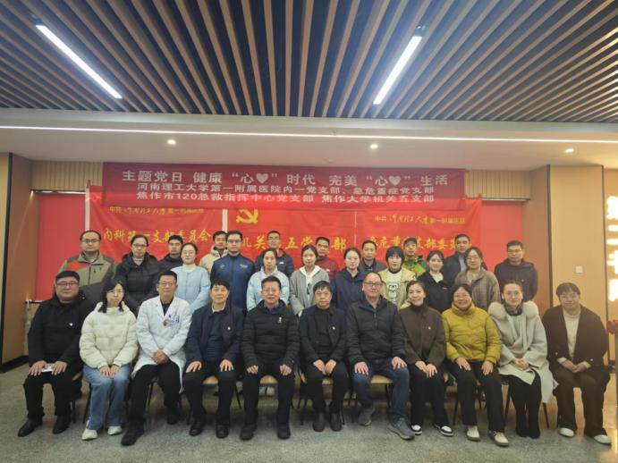 在第11個“1120中國心梗救治日”來臨之際,為提高我校退休教職工和在校師生對急性心肌梗死嚴重性與防治重要性的認知,普及急性心梗的規范化救治流程。11月18日下午,焦作大學聯合焦作市第二人民醫院、焦作市120急救指揮中心在南校區開展了“健康‘心’時代 完善‘心’生活”基層黨支部共建主題黨日活動。參與本次共建的黨支部有焦作大學機關第五黨支部、焦作市第二人民醫院內一黨支部、危急重癥黨支部、焦作市120急救指揮中心黨支部。