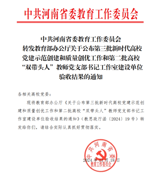 近日,教育部辦公廳印發《關于公布第三批新時代高校黨建示范創建和質量創優工作和第二批高?!半p帶頭人”教師黨支部書記工作室建設單位驗收結果的通知》,我校經濟管理學院教工黨支部順利通過第三批“全國黨建工作樣板支部”建設驗收。