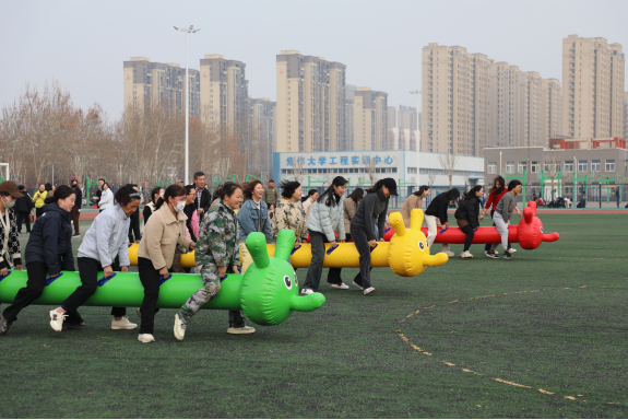 3月6日下午,為慶祝第115個“三八”國際勞動婦女節,校工會在南校區運動場舉辦“三八”趣味運動會。校黨委委員、工會主席宋萍,工會副主席崔寶玉,太極武術學院院長侯強出席活動,各分工會的女教職工代表踴躍參賽。本次活動由校黨委委員、宣傳統戰部部長張繼文主持。