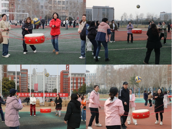 運動會以分工會為單位組織開展,設有“趣味毛毛蟲”和“鼓動人生”兩個項目。比賽現場氣氛熱烈,參賽教職工團結協作、奮勇爭先。“趣味毛毛蟲”中,隊員們步伐一致向前沖刺;“鼓動人生”里,大家默契配合讓球跳動。比賽不僅展現了女教職工們的活力與風采,也增強了彼此間的凝聚力。
