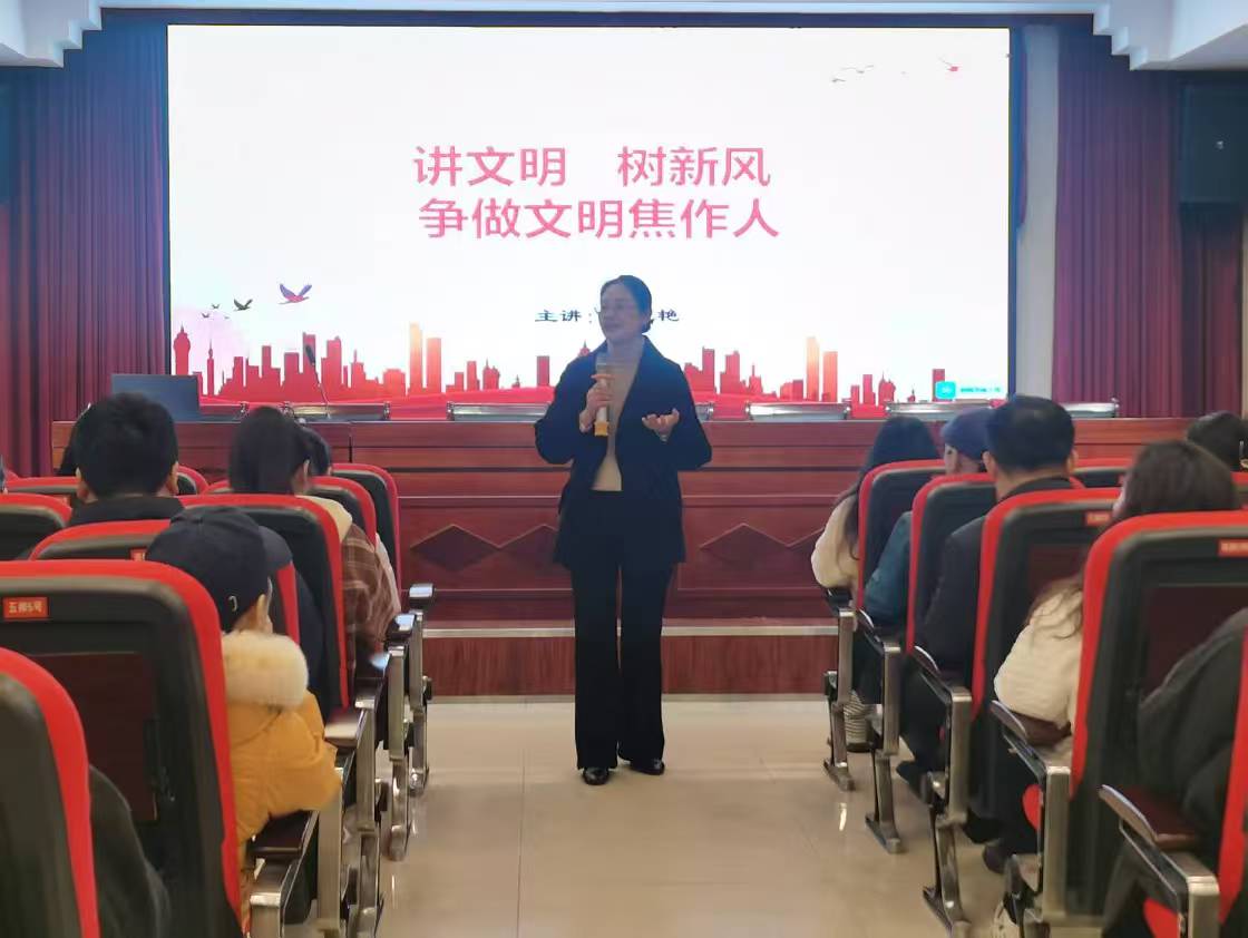 活動現場,王曉艷以“講文明,樹新風,爭做文明焦作人”為主題,深入淺出地闡述了文明實踐的重要意義與實踐路徑。她從“對人的理解”入手,指出人的本質是“一切社會關系的總和”,強調在復雜多樣的社會關系中,良好的人際關系是文明實踐的基礎。通過生動的案例和深入的分析,她向社區群眾展示了如何在家庭、單位以及個人生活中,通過融通、變通、圓通等方式,構建和諧的人際關系。