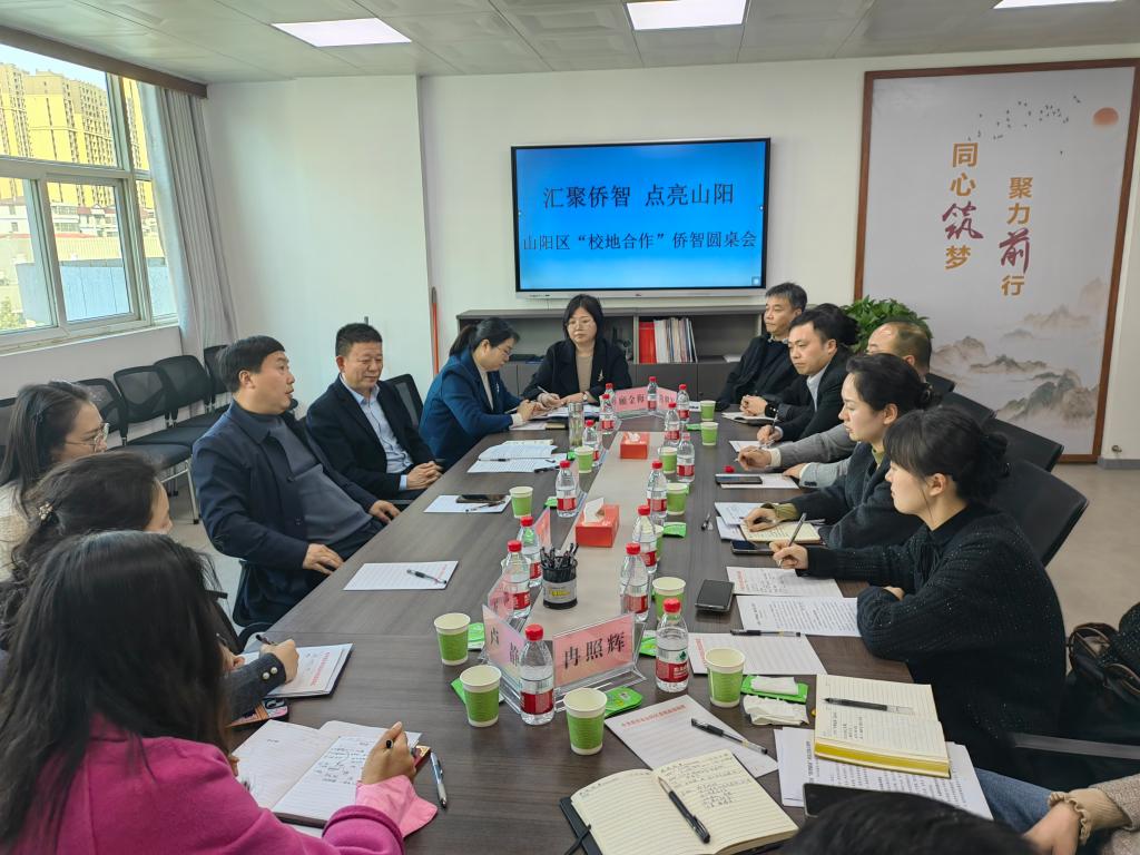 近日,山陽區“校地合作”僑智圓桌座談會在山陽區人民政府會議室召開,我校經濟管理學院盧靜、藝術學院李薇兩位老師參加了座談會并交流發言。