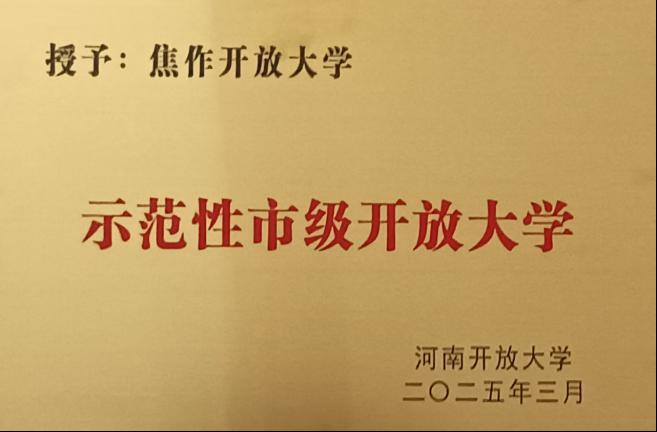 近日,全省開放大學辦學體系一體化推進教育教學綜合改革會議召開。會議宣讀了《河南開放大學關于公布支持建設2024年示范性市、縣開放大學名單的通知》,焦作開放大學被授予“市級示范性開放大學”。