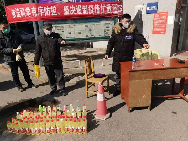 為家屬院居民分發消殺藥劑