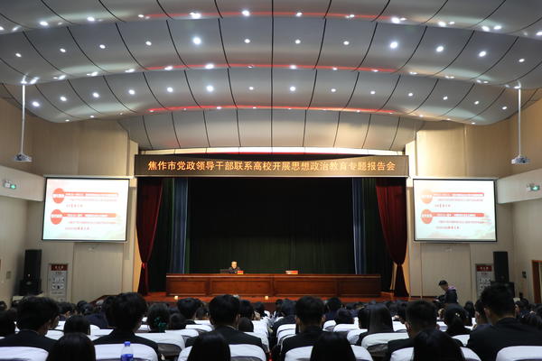 大河網訊(記者 王輝 通訊員 翟惠楠)“1921年7月23日,中國共產黨第一次全國代表大會開幕。隨后,在浙江嘉興南湖的一條‘紅船’上,中國共產黨正式成立了……”3月26日下午,伴隨著焦作市委常委、宣傳部長宮松奇的講述,焦作市黨政領導干部聯系高校開展的思想政治教育專題報告會在焦作大學南校區學術報告廳拉開帷幕。