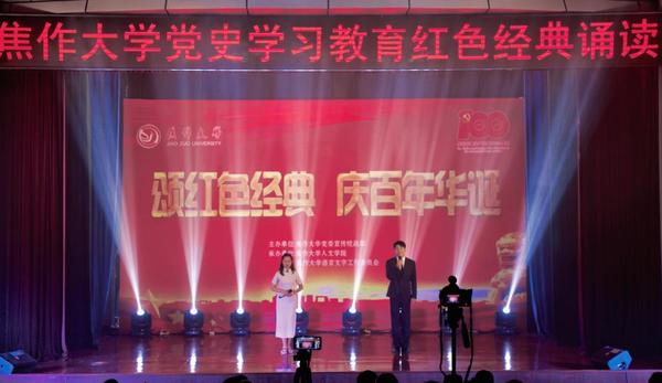 《大河網(wǎng)》、《頂端新聞》:焦作大學(xué)舉辦“黨史學(xué)習(xí)教育紅色經(jīng)典誦讀”活動(dòng)