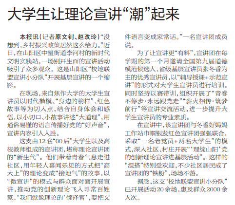 近日,焦作晚報對我校大學生宣講團宣講活動進行報道。