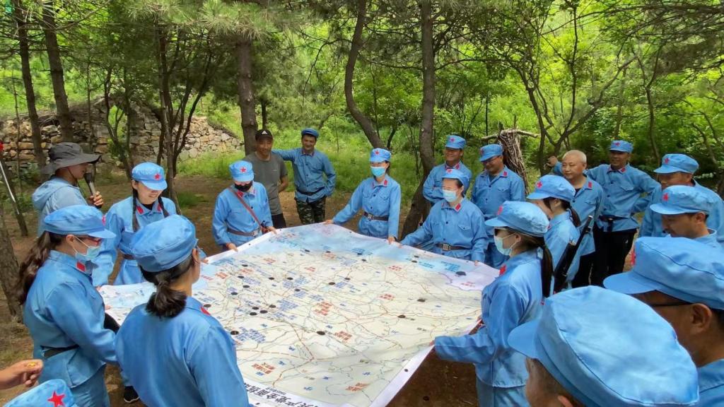 從紀(jì)念館出來(lái),大家穿上紅軍服,扛著鮮紅的旗幟,邁出堅(jiān)定的步伐,走一段山路,感受了曾經(jīng)紅軍在艱苦的環(huán)境下赤腳走完二萬(wàn)五千里的艱辛,并進(jìn)行了“打鬼子”射擊訓(xùn)練。