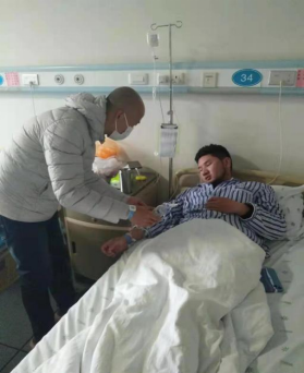 疫情無情人有情。我因打籃球而鼻梁受傷住進了醫院,疫情原因父母不在身邊,我院王本正、秦浩、秦鵬老師三位老師每天都會到醫院來照顧我,老師們無微不至的關懷給我帶來了春天般的溫暖。