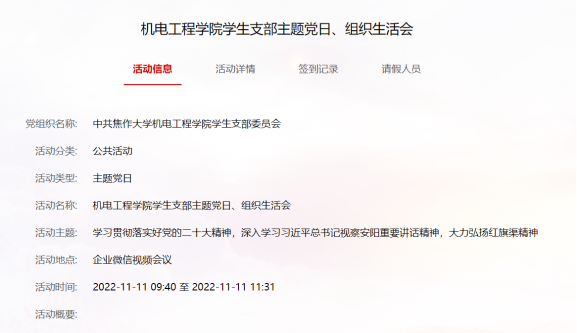 為認(rèn)真落實(shí)《關(guān)于以“深入學(xué)習(xí)習(xí)近平總書記視察安陽重要講話精神,大力弘揚(yáng)紅旗渠精神”為主題召開專題組織生活會(huì)的通知》精神,2022年11月11日上午,機(jī)電工程學(xué)院教工黨支部和學(xué)生黨支部通過線下線上相結(jié)合的方式組織召開了專題組織生活會(huì)。