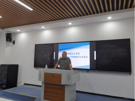2023年8月28日下午,馬克思主義學院在紅色思政教室召開2023~2024年第一學期教學工作會議,學院領導班子及全體思政課教師參加。