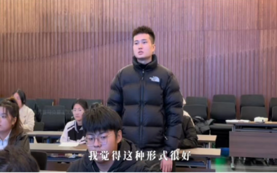 思政課骨干教師與金牌講解員同場教學,優勢互顯,相得益彰,師生互動熱烈,現場精彩紛呈,受到學生真心喜愛。在最后的課后分享環節中,2023級中文1班學生白文晴說:“沒想到思政課還可以這么生動活潑”,中文2班學生周全談到:“這種上課形式非常好,打破傳統一堂課一個老師的模式,理論與實際相融合,現場與教材相融合,參觀與教學相融合 ,打造思政課實踐教學新課堂,讓我們的思維和認識走向深刻。”