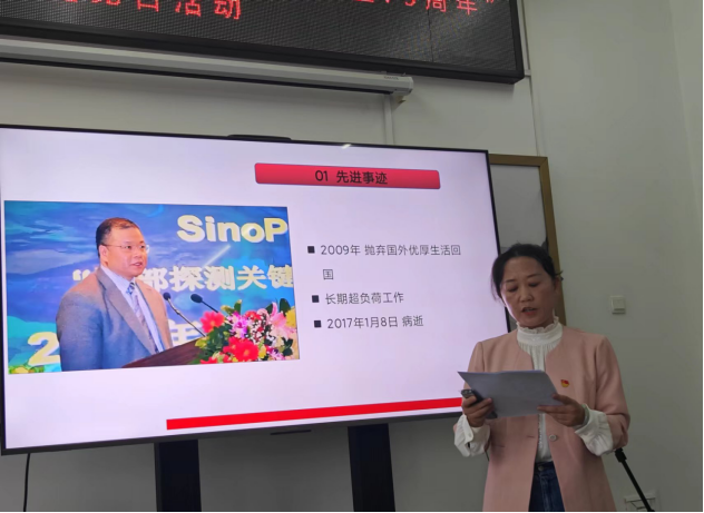 黨總支副書記李玉琪分享了黃大年的先進事跡。黃大年的一生都在為國家的科技事業和人民的教育事業而努力奮斗,他的愛國情懷、奉獻精神、科研能力讓全體黨員深感敬佩。
